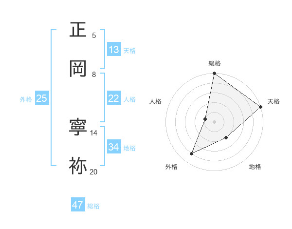 正岡 寧袮さんの総格は47画の5点!