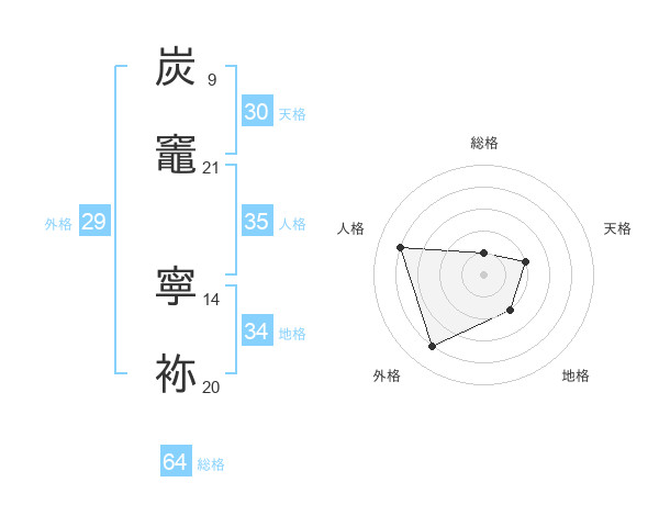 炭竈 寧袮さんの総格は64画の1点!