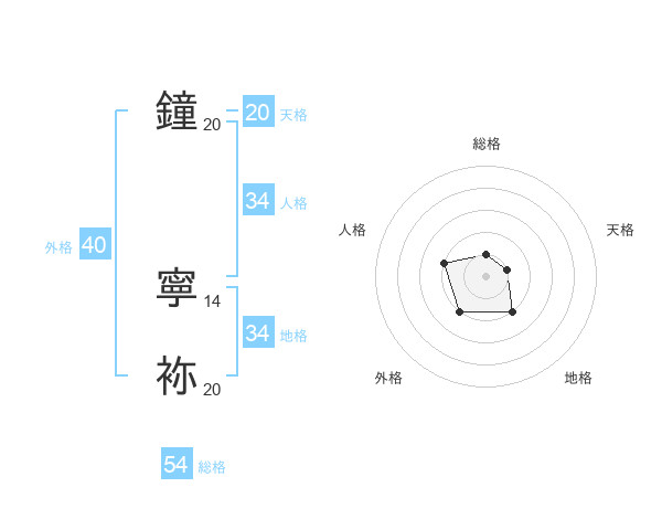 鐘 寧袮さんの天格は20画の1点!
