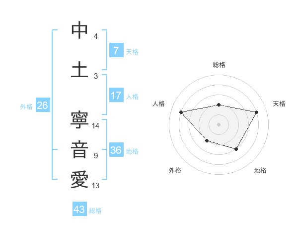 中土 寧音愛さんの総格は43画の2点!