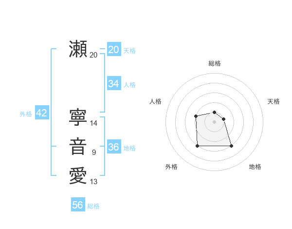 瀬 寧音愛さんを姓名の画数から五運を鑑定