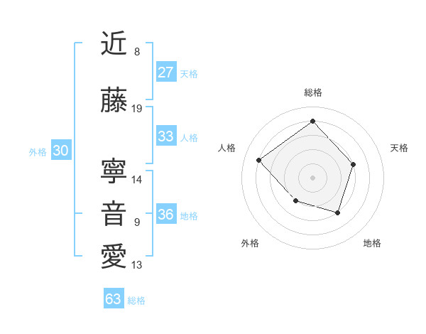 近藤 寧音愛さんの総格は63画の4点!