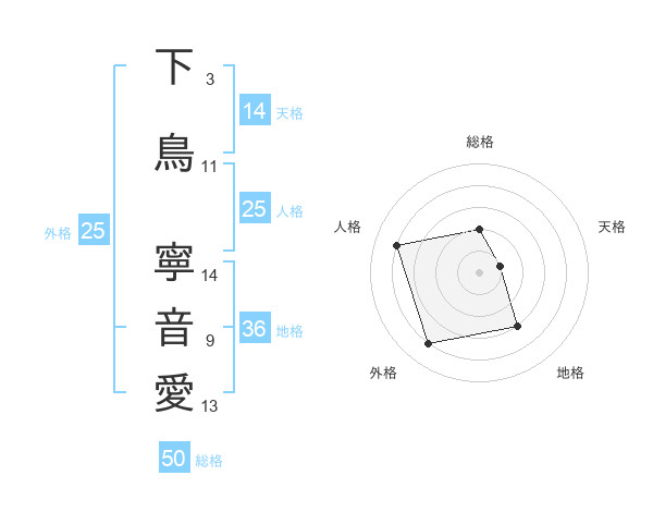 下鳥 寧音愛さんの総格は50画の2点!