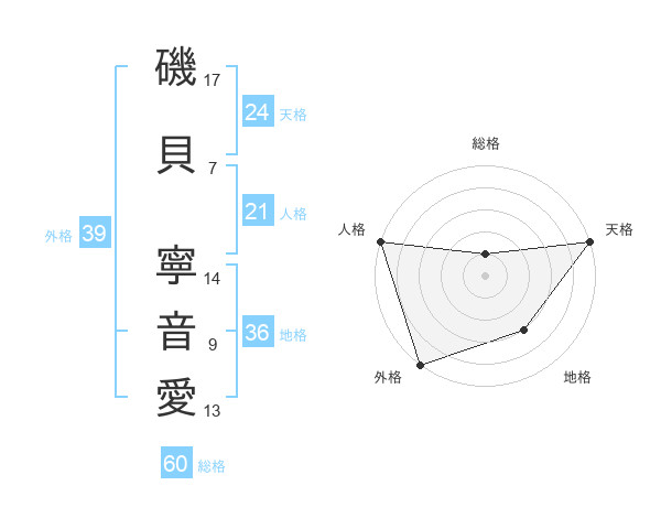磯貝 寧音愛さんを姓名の画数から五運を鑑定