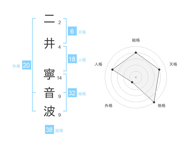 二井 寧音波さんの総格は38画の4点!