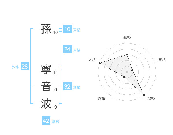 孫 寧音波さんを姓名の画数から五運を鑑定
