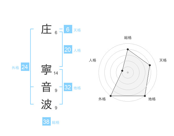庄 寧音波さんの総格は38画の4点!