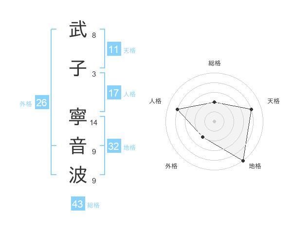 武子 寧音波さんの総格は43画の2点!