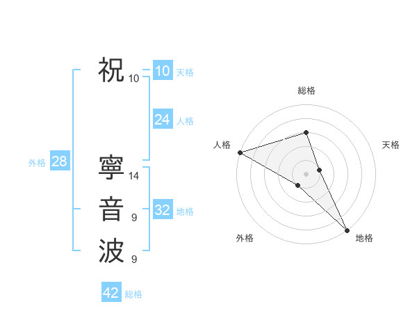 祝 寧音波さんの総格は42画の3点!