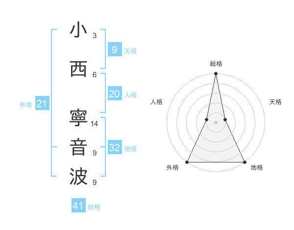 小西 寧音波さんを姓名の画数から五運を鑑定
