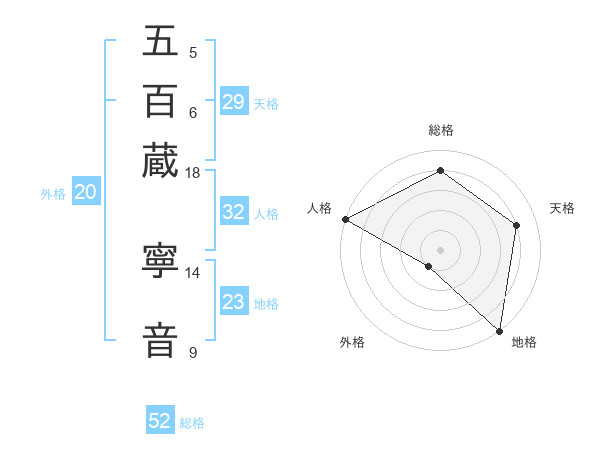 五百蔵 寧音さんの総格は52画の4点!