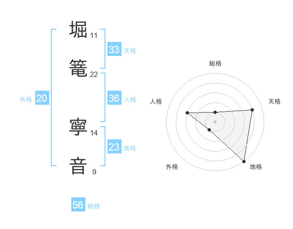 堀篭 寧音さんの外格は20画の1点!