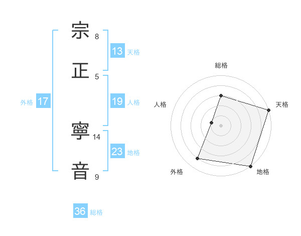 宗正 寧音さんの天格は13画の5点!