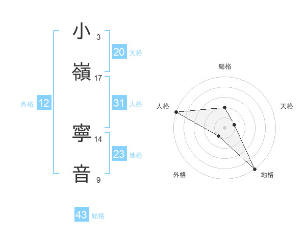 小嶺 寧音さんの天格は20画の1点!
