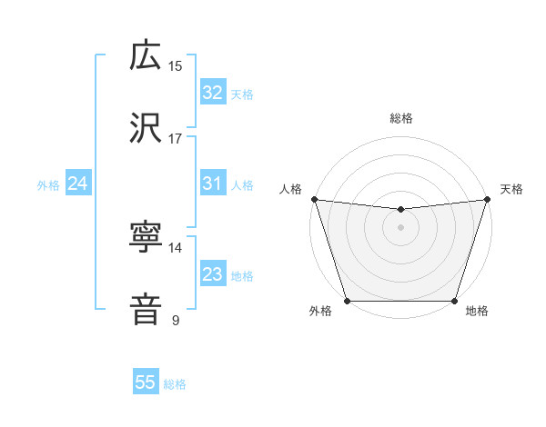 広沢 寧音さんの外格は24画の5点!