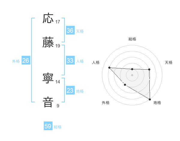 応藤 寧音さんの総格は59画の1点!