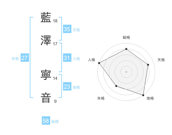 藍澤 寧音さんの総格は58画の4点!