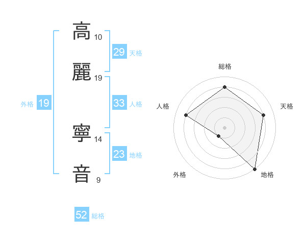 高麗 寧音さんの総格は52画の4点!