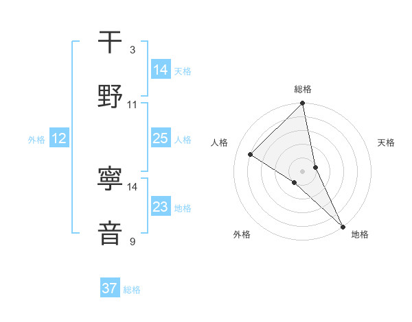 干野 寧音さんの総格は37画の5点!