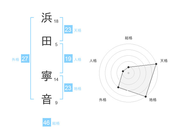 浜田 寧音さんの天格は23画の5点!