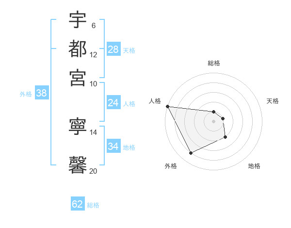 宇都宮 寧馨さんの外格は38画の4点!