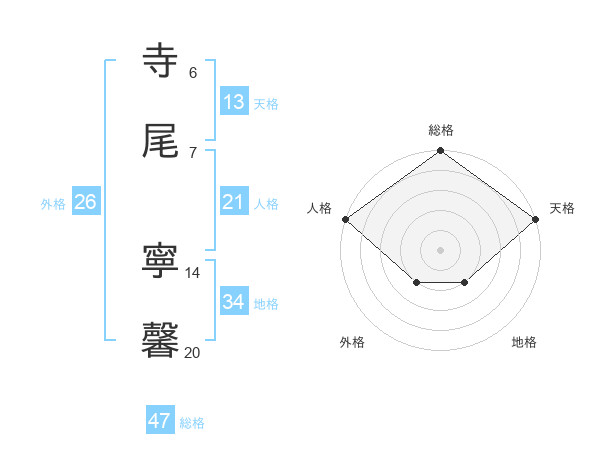 寺尾 寧馨さんを姓名の画数から五運を鑑定
