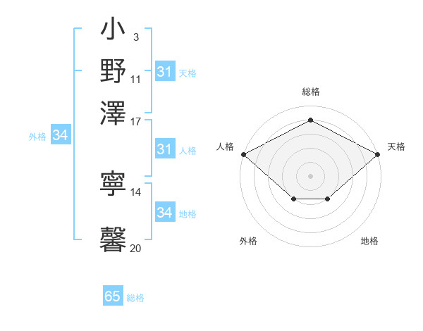 小野澤 寧馨さんを姓名の画数から五運を鑑定
