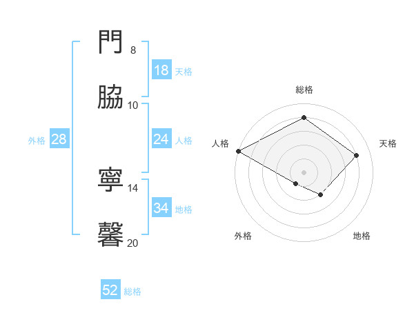 門脇 寧馨さんの総格は52画の4点!