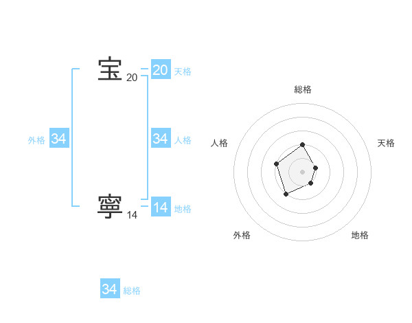 宝 寧さんの外格は34画の2点!