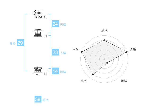 德重 寧さんの総格は38画の4点!