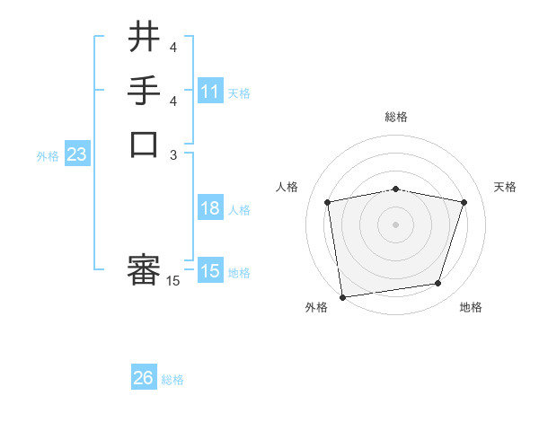 井手口 審さんの総格は26画の2点!