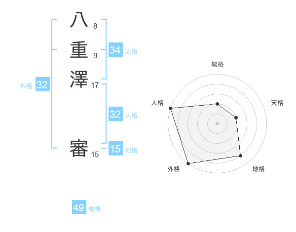 八重澤 審さんの総格は49画の2点!