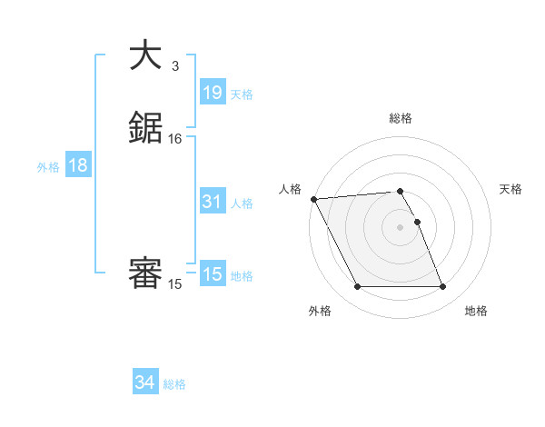 大鋸 審さんの総格は34画の2点!