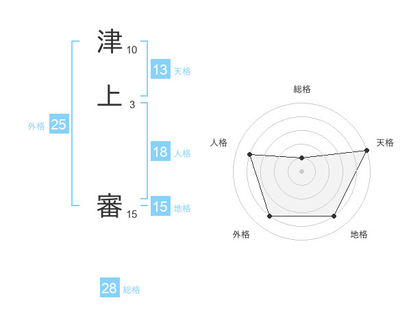 津上 審さんの天格は13画の5点!