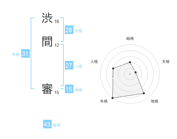 渋間 審さんの外格は31画の5点!
