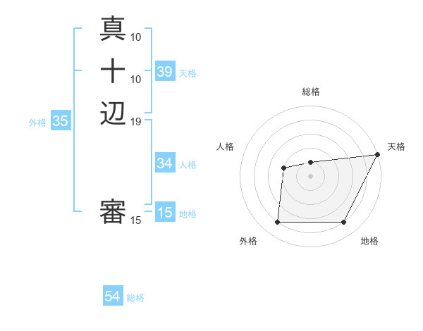 真十辺 審さんの天格は39画の5点!