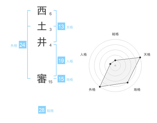 西土井 審さんの総格は28画の1点!