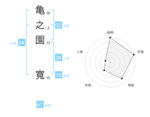 亀之園 寬さんの総格は47画の5点!