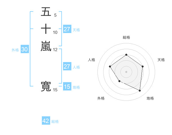 五十嵐 寬さんの総格は42画の3点!