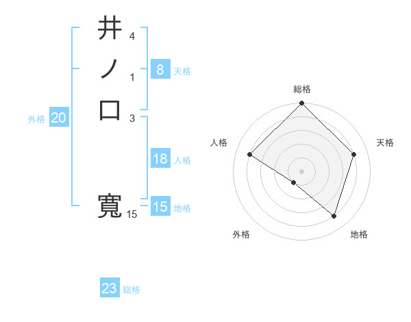 井ノ口 寬さんを姓名の画数から五運を鑑定