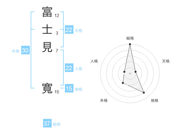 富士見 寬さんの総格は37画の5点!