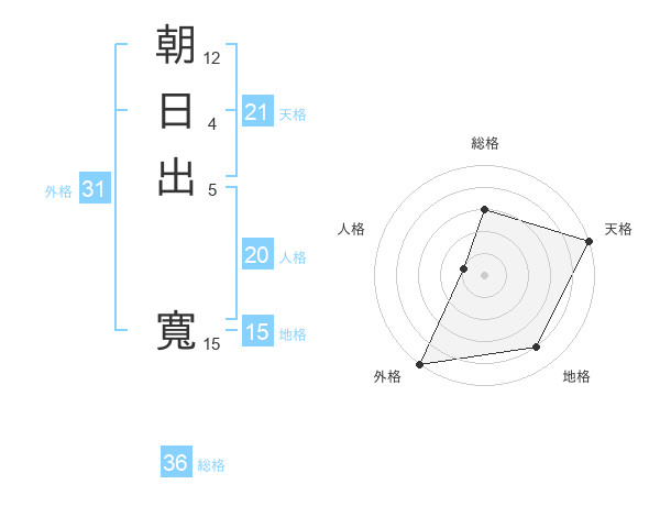 朝日出 寬さんの天格は21画の5点!