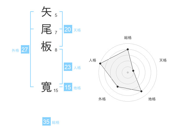 矢尾板 寬さんの総格は35画の4点!