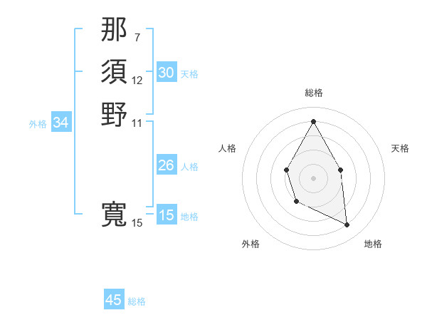 那須野 寬さんの総格は45画の4点!