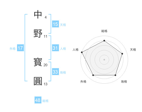 中野 寳圓さんを姓名の画数から五運を鑑定