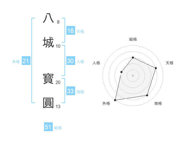 八城 寳圓さんの外格は21画の5点!