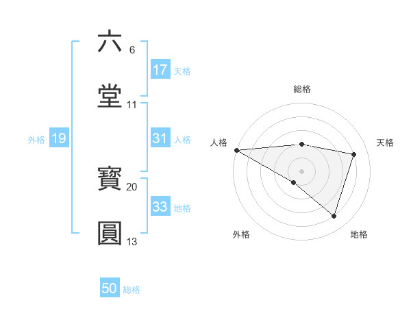 六堂 寳圓さんの総格は50画の2点!