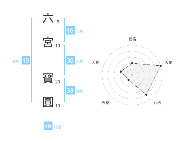 六宮 寳圓さんを姓名の画数から五運を鑑定