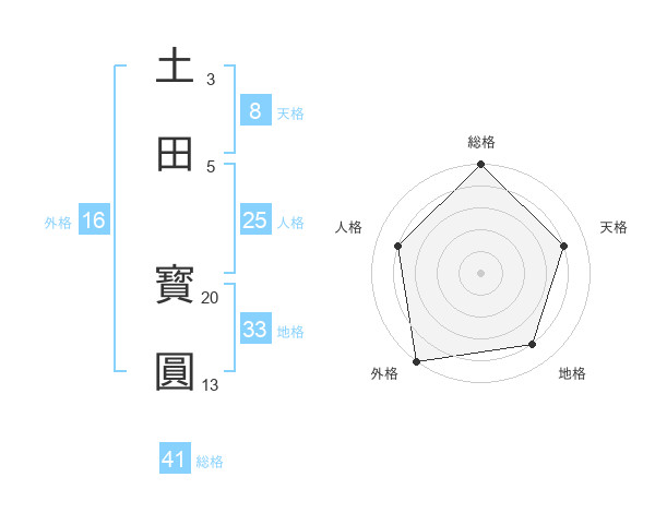 土田 寳圓さんを姓名の画数から五運を鑑定