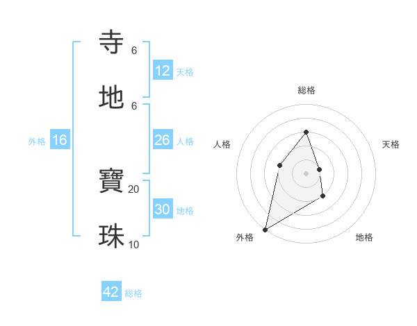 寺地 寶珠さんを姓名の画数から五運を鑑定